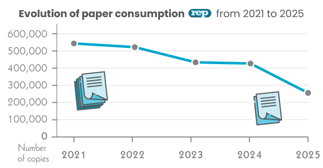 Reducing paper consumption remains an ongoing objective, with indicators and continuous improvement measures in place.